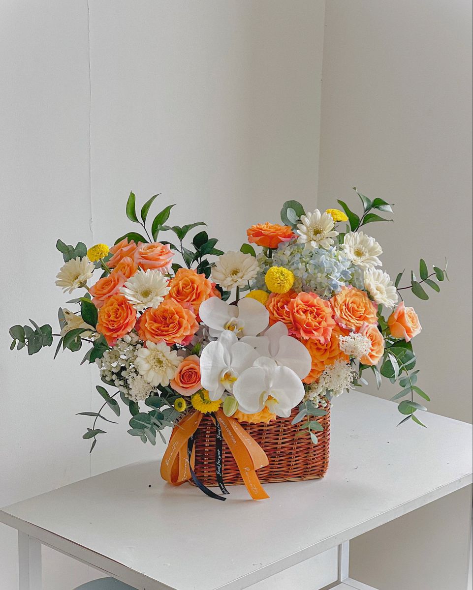 Lẵng Hoa Chúc Mừng Tone Cam Trắng CS-105